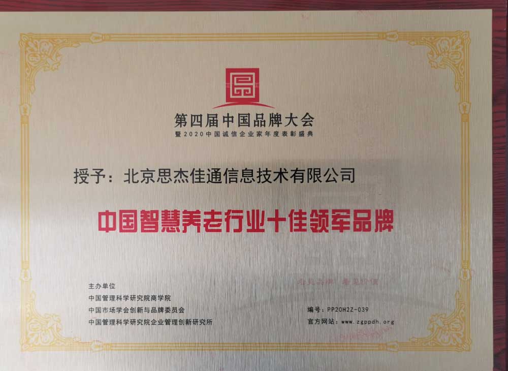 五、杰佳通榮膺“中國智慧養(yǎng)老行業(yè)十街領(lǐng)軍品牌”