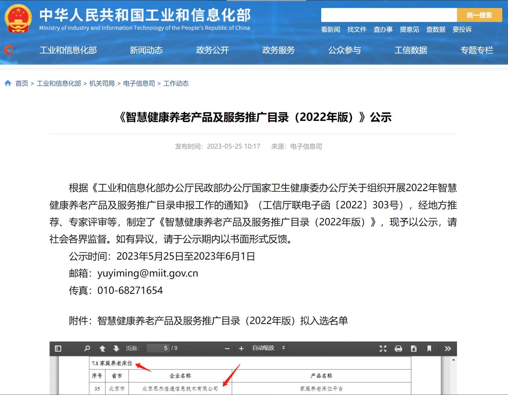 杰佳通家庭養(yǎng)老床位平臺入選國家三部委《智慧健康養(yǎng)老產(chǎn)品及服務(wù)推廣目錄(2022年版)》