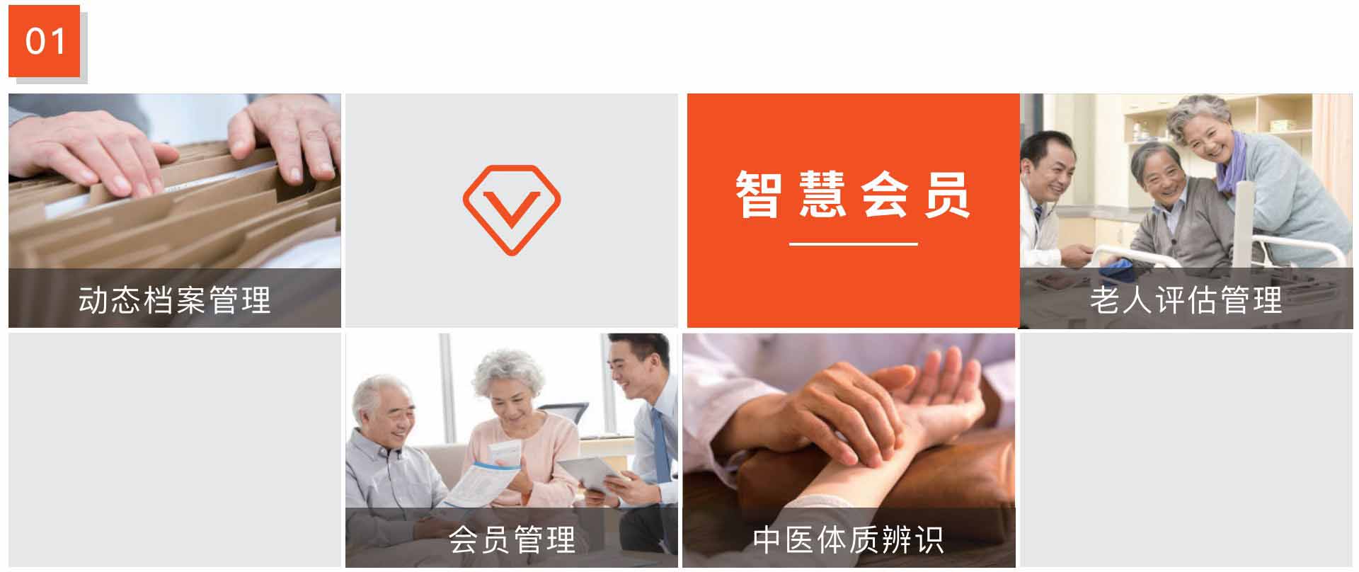 對(duì)所管理的老人基本信息(基本信息、健康信息、親屬信息等)動(dòng)態(tài)管理起來(lái),并對(duì)老人活動(dòng)能力、中醫(yī)體質(zhì)等進(jìn)行評(píng)估,對(duì)老人分機(jī)管理;發(fā)展為會(huì)員的用戶進(jìn)行個(gè)性化的會(huì)員服務(wù)管理。